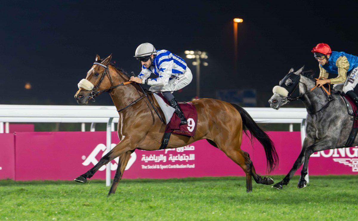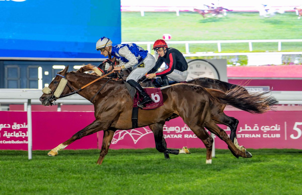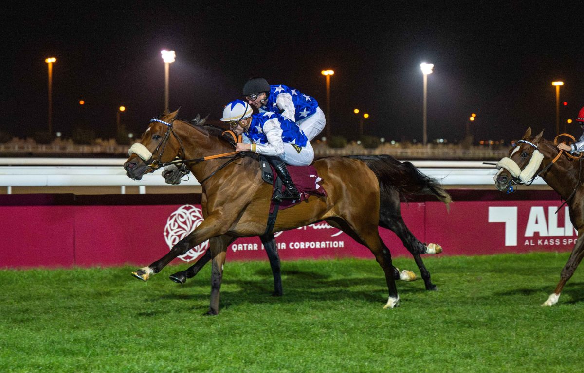 Nasser Al Shahania (Jaafer ASF x Nacree Al Maury) landed the Eraida Cup in the evening’s final and feature race, a Purebred Arabian Handicap over 2200m (Class 2) for five-year-olds and older, with seven runners going to post. The six-year-old chestnut, racing in the colours of Al Shahania Stud and prepared by Rudy Nerbonne, who secured a one-two, was steered by Lukas Delozier and recorded his first win in just three outings this campaign, prevailing by half a length, with a decisive gap back to third. Settled towards the rear in the early exchanges, Nasser Al Shahania travelled comfortably as Alshanfara (AF AlBahar) showed the way initially from Al Kazim (Al Mamun Monlau) and Medan (Assy) before the latter took over. The pace then shifted again through the middle stages when Lattam (No Risk Al Maury) surged forward to assume control, setting the race up for a late challenge. Approaching the home turn, Nasser Al Shahania made his move from the back of the field, sweeping into contention with a powerful surge to take the lead. His stablemate Caid Du Soleil (Al Mourtajez), carrying the same colours and also representing the Nerbonne yard, produced a matching effort to join him and the pair quickly drew clear of the remainder in the straight. The final 200m developed into a duel between the stable companions, with Caid Du Soleil, partnered by Soufiane Saadi, closing strongly, but Nasser Al Shahania found enough to hold him at bay to the line. Lattam, representing Abdulrahman Fahad Al-Attiyah, under the guidance of Hamad Al-Jehani and with Arnaud de Lepine in the saddle, finished a further four lengths adrift in third, underlining how the first two home had settled the outcome between themselves in the closing stages.